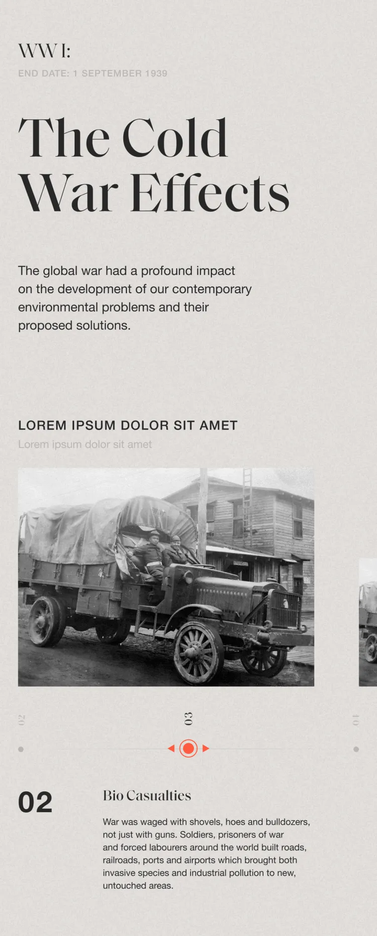 Small interaction points were used through out the website. From navigating through timeline points to scrolling through elements and the use of touch events like dragging - we made it so the website is engaging but not too experimental or disorienting.