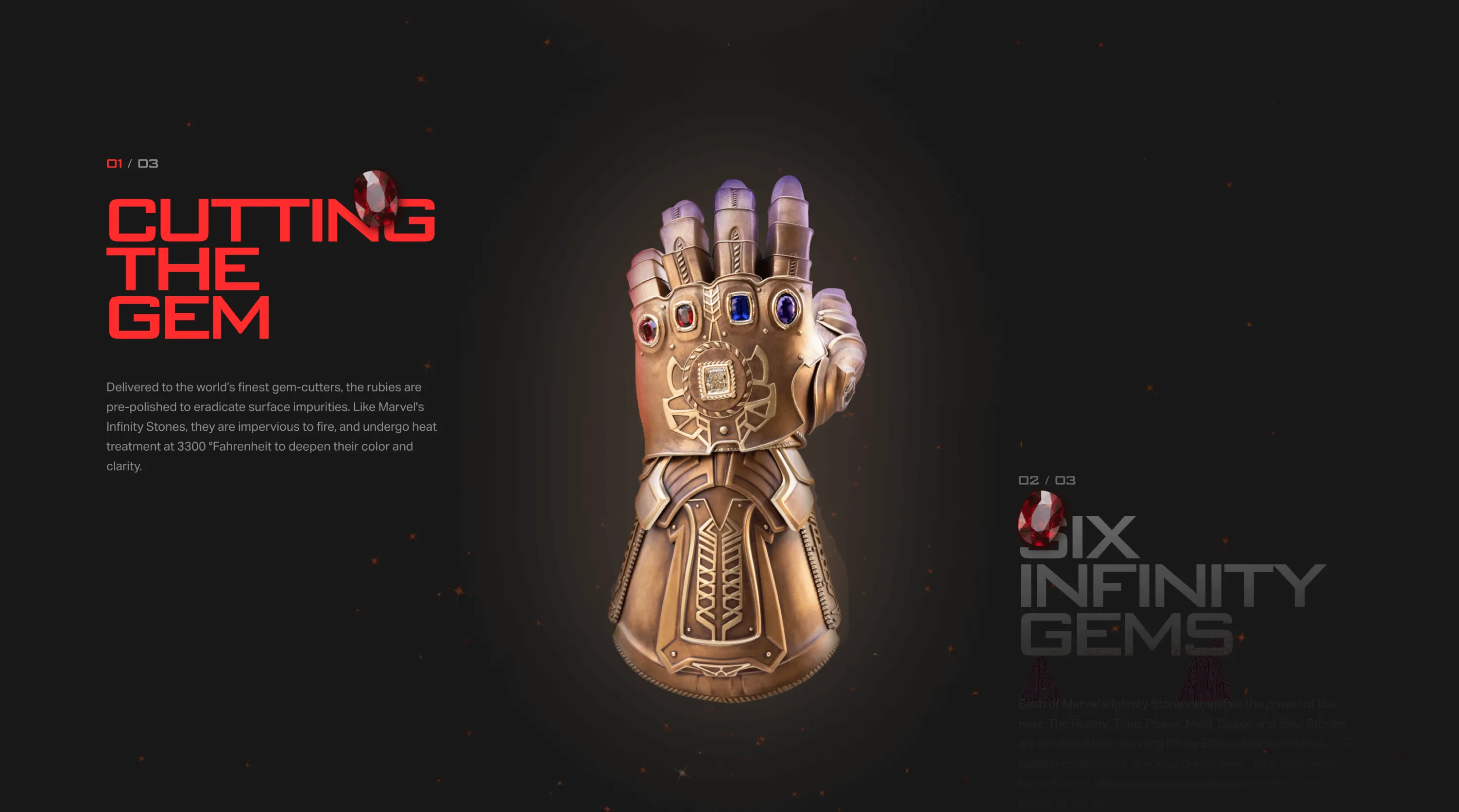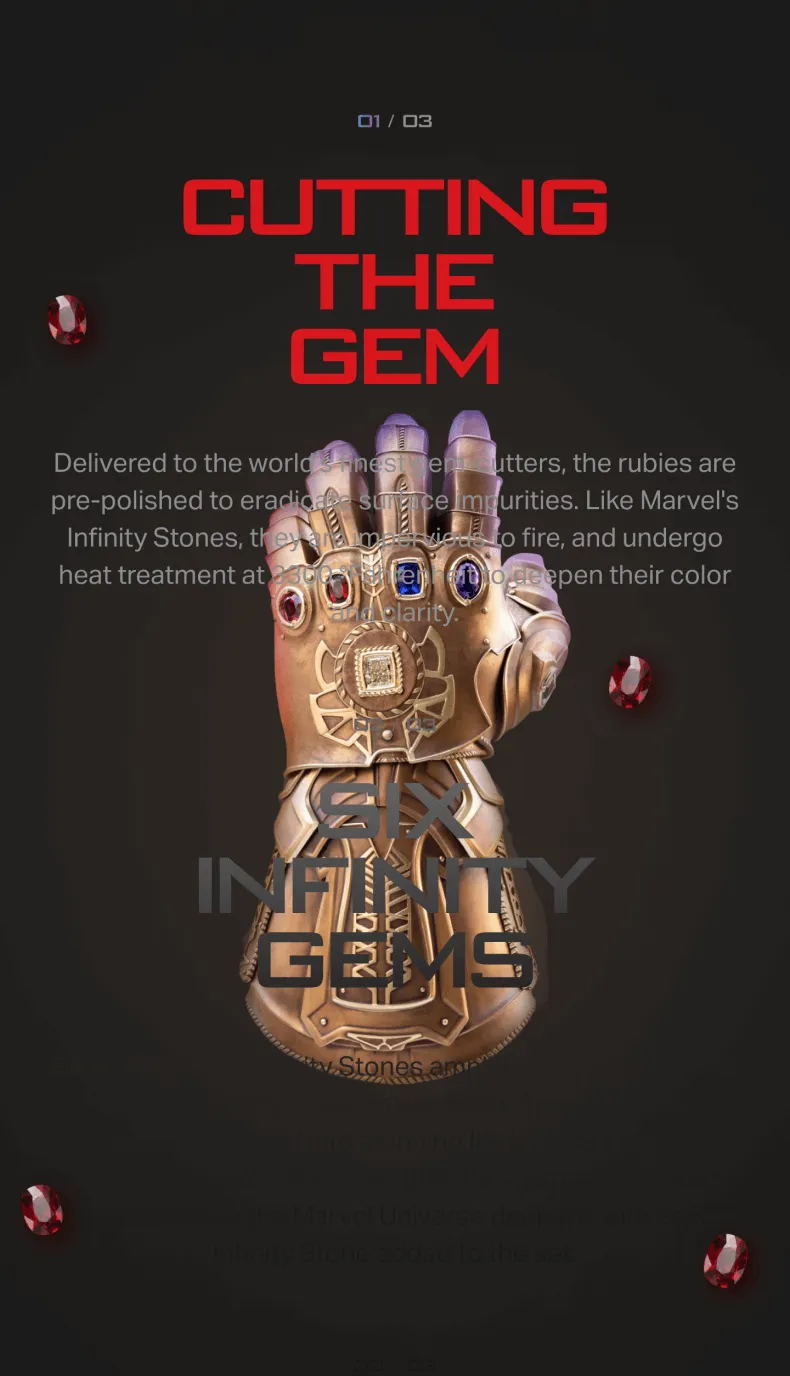 The project featured interactive 3D elements like a spinning gauntlet and a 3D interactive infinity stone.